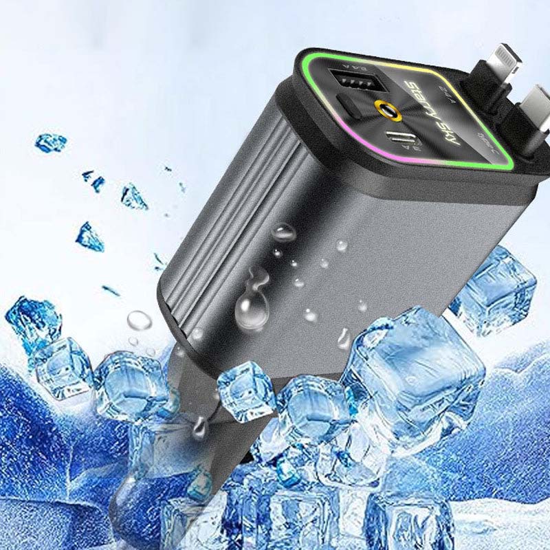 [ Geavanceerde Autolader ]:Autolader met Sterrenhemel. De 4-in-1 autolader is uitgerust met een echte PD 66W Type-C intrekbare kabel (snel oplaadpoort), een IOS intrekbare kabel en extra USB-C- en USB-A-poorten. Deze lader biedt snel opladen voor maximaal vier apparaten tegelijkertijd.