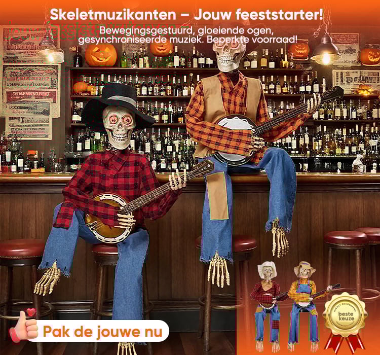 "Deze skeletmuzikanten waren het hoogtepunt van ons Halloweenfeest! Iedereen bleef maar lachen en filmde ze. De beste decoratie ooit!"