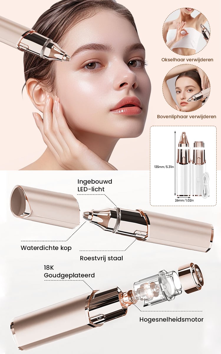 Eindelijk een pijnloze manier om mijn wenkbrauwen te verzorgen en ongewenst gezichtshaar te verwijderen. De roestvrijstalen bladen zijn zo soepel, en mijn huid voelt daarna geweldig aan!