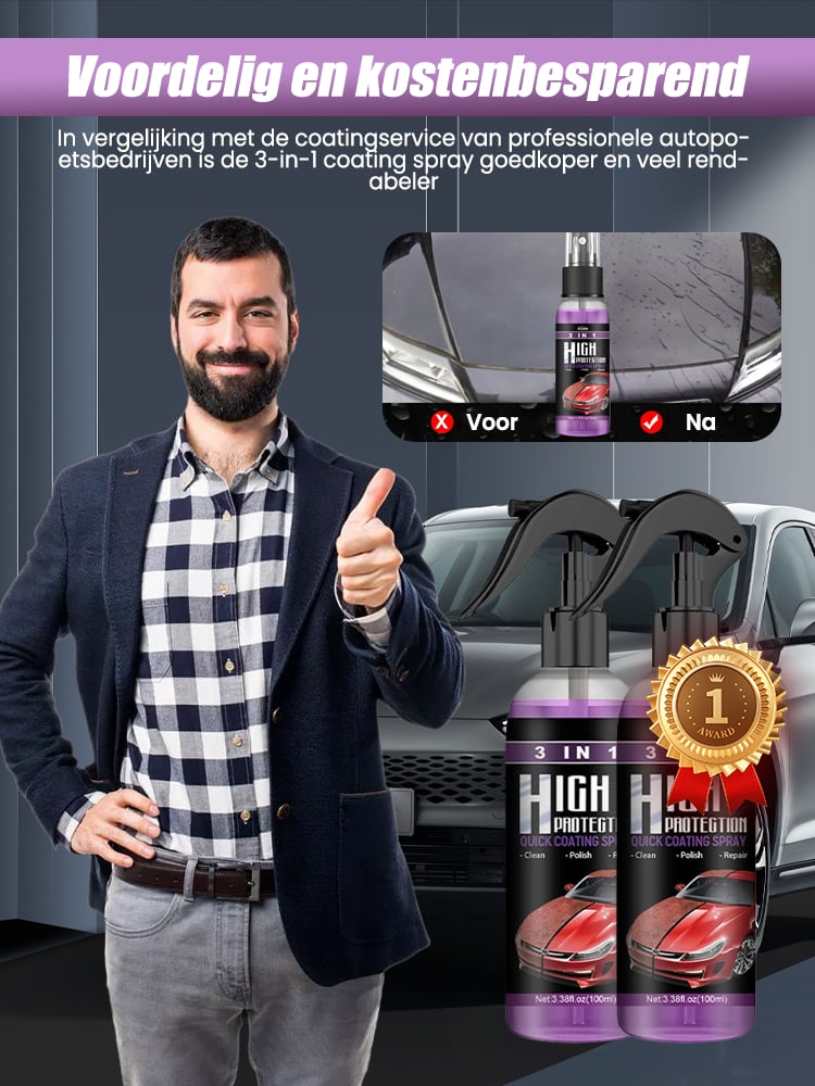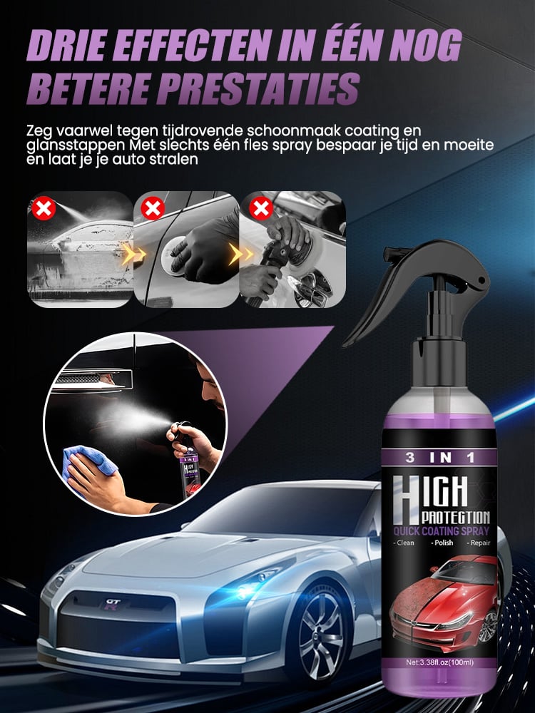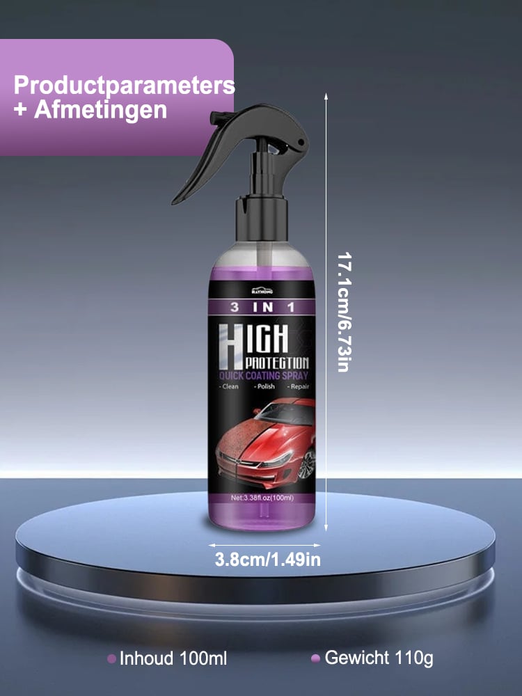 Spuit het gewoon op uw autolak, het verwijdert diverse hardnekkige vlekken direct bij contact, waardoor u tijd en geld bespaart. Geen vervelend autowassen meer.