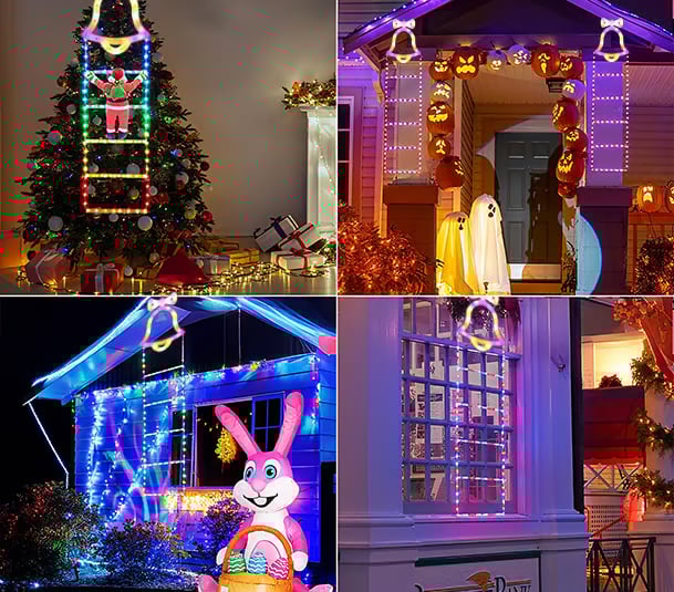 "Ontdek onze Kerstladder Decoratielampen met Kerstman—feestelijke kleuren & warme gloed, 8 verlichtingsmodi, weerbestendig & eenvoudige installatie voor onmiddellijke vakantiemagie!"