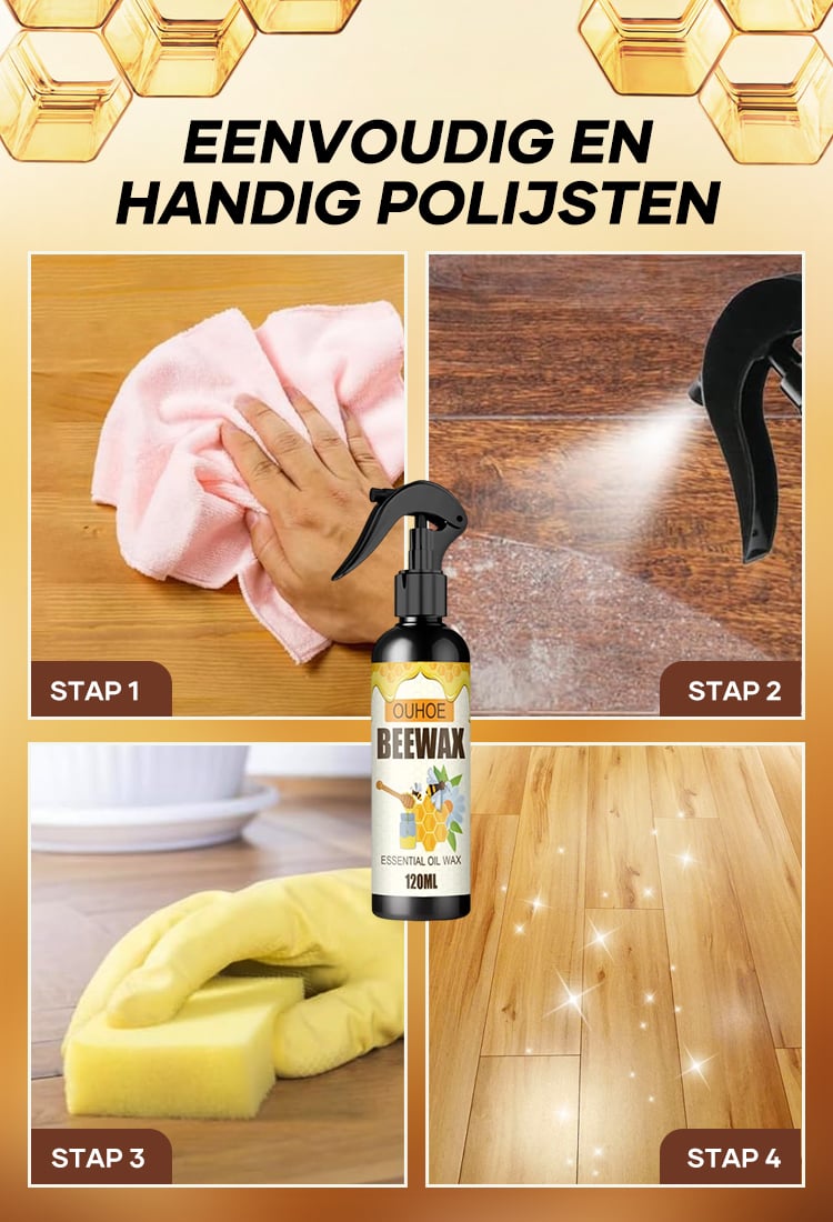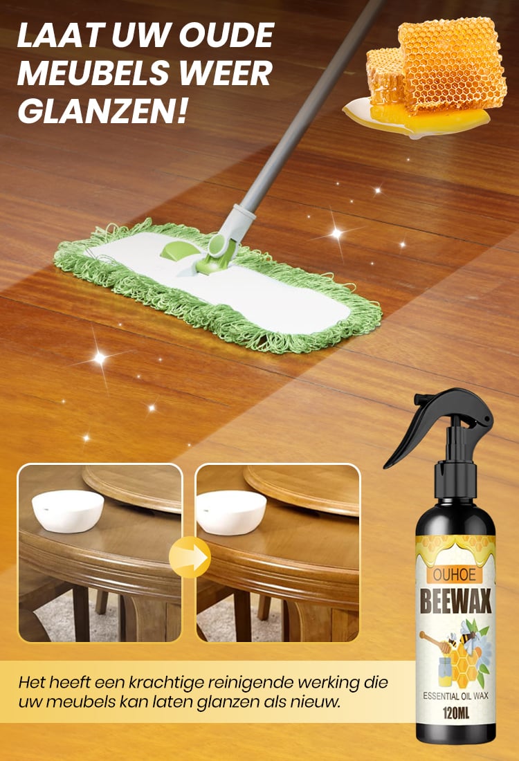 Ik heb deze bijenwasspray gebruikt op mijn houten eettafel, en de resultaten waren ongelooflijk. Het doffe oppervlak glanst nu als nieuw, en het heeft zelfs hardnekkige watervlekken verwijderd. Ik hou van hoe eenvoudig het is aan te brengen!