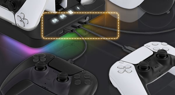 Uitgerust met 2 type-c-adapters, eenvoudig op te laden voor controller en opslag, verleng je speeltijd
