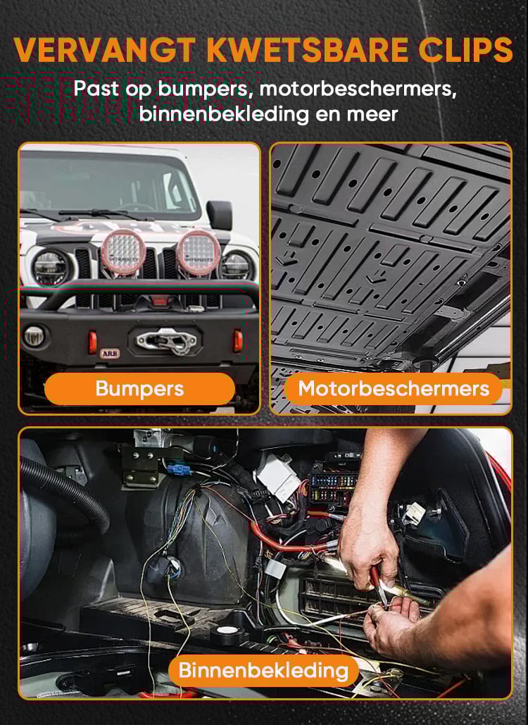 Het vervangen van de clips onder de auto was altijd zo’n gedoe, maar deze zijn echt een uitkomst. Gewoon duwen en ze klikken vast – geen gereedschap nodig. Ik heb de meeste losse onderdelen van mijn auto hiermee vervangen en ze houden het heel goed vol.