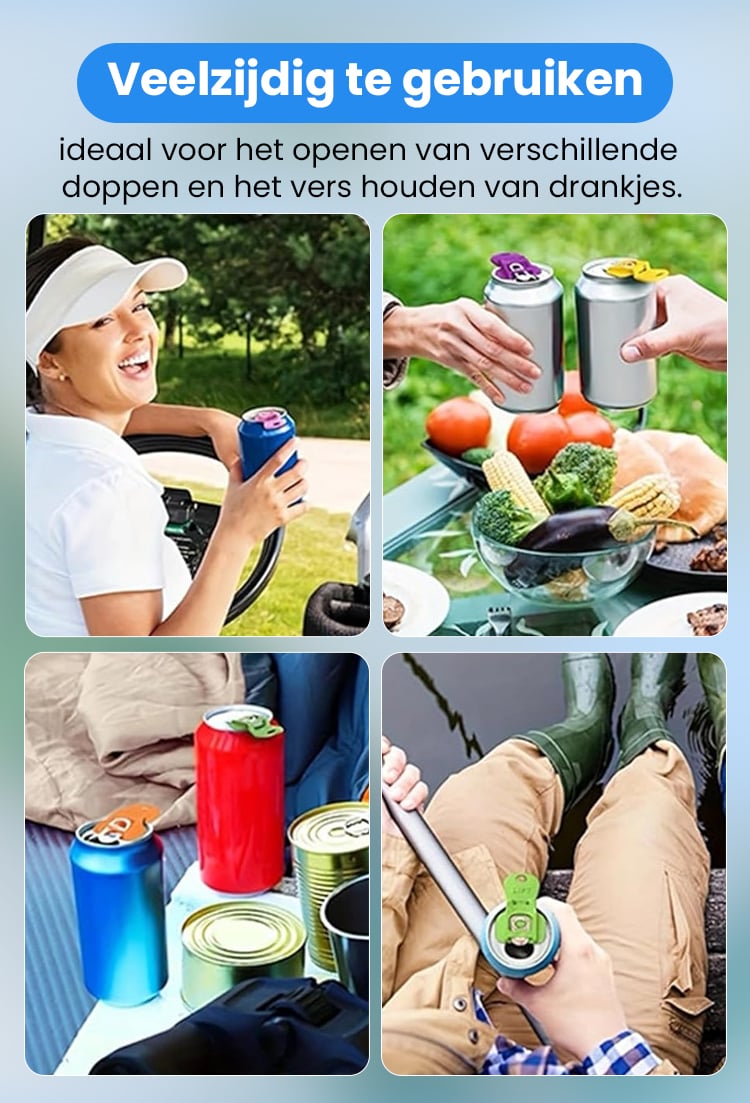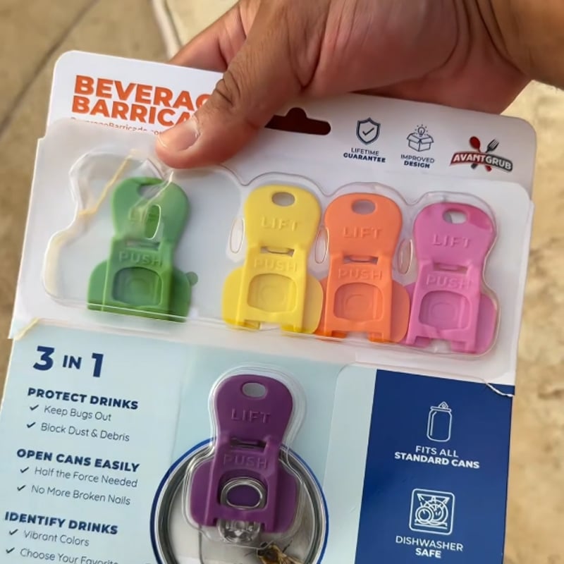 Deze kleine hulpmiddelen zijn echt een redder in nood bij picknicks en familiediners. Ze passen op elk blikje dat ik geprobeerd heb, van frisdrank tot bier, en door de felle kleuren raak je nooit meer drankjes kwijt.