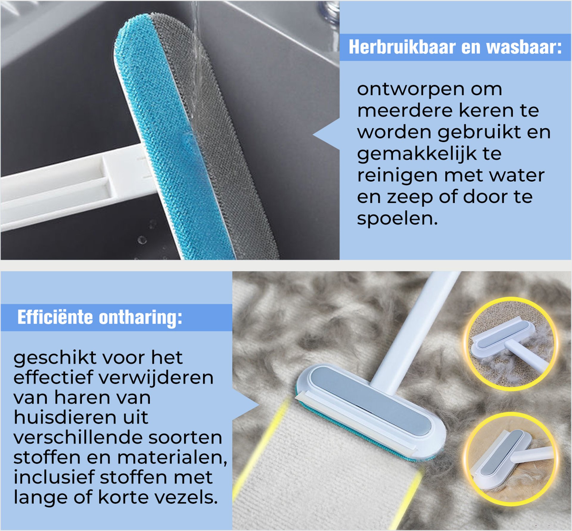 Levensveranderend! Deze dierenhaarverwijderaar doet wonderen op mijn meubels en kleding. Geen plakkerige resten meer zoals bij pluizenrollers!
