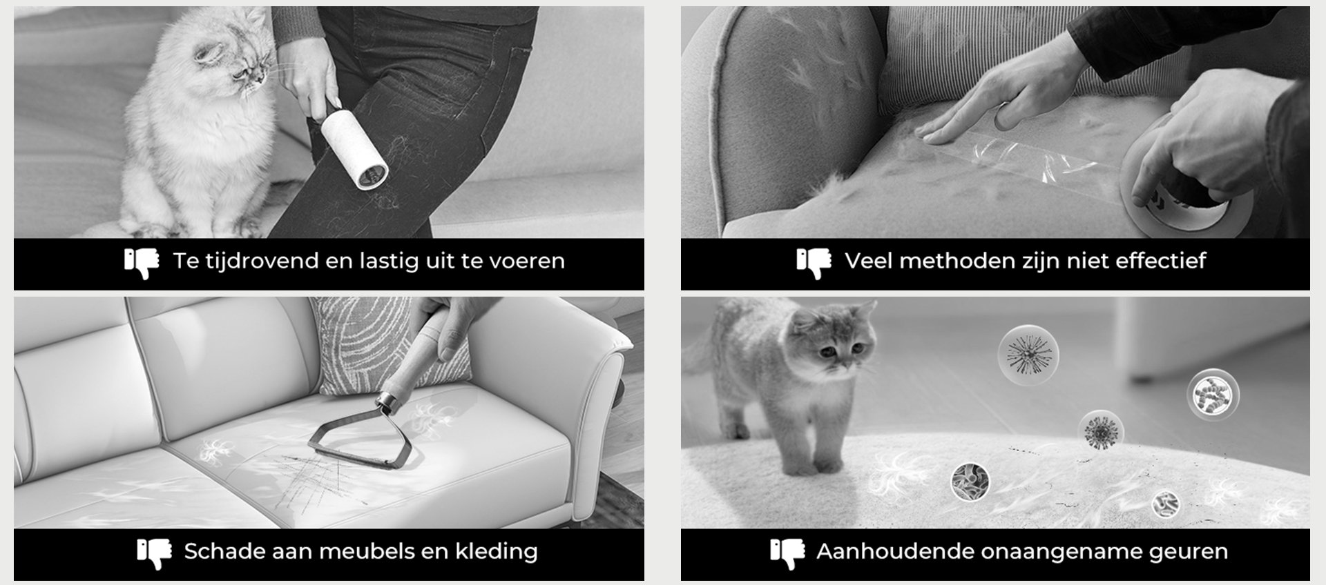 Als u op één van deze vragen ‘JA’ heeft geantwoord! Met onze multifunctionele huisdierhaarverwijderaar wordt schoonmaken een fluitje van een cent, zodat u in een mum van tijd de perfecte schoonmaakervaring kunt creëren!