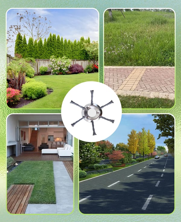Sterke stalen borstels snijden door zelfs het dikste onkruid, mos en struiken in seconden – geen eindeloos trekken meer.