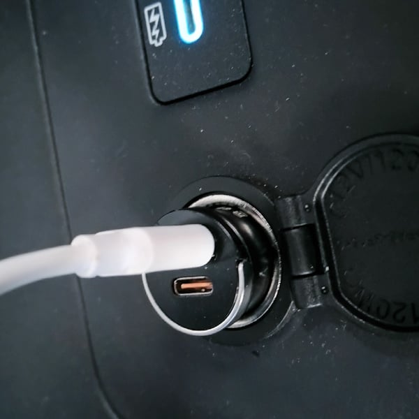 · Hij plugde hem in de sigarettenaansteker van zijn auto