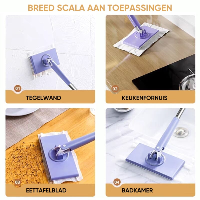 🧹 Multifunctioneel gebruik: Geschikt voor het dweilen van vloeren, het schoonmaken van kasten, spiegels, muren, keukens en meer — deze veelzijdige mop voldoet aan uiteenlopende schoonmaakbehoeften in verschillende ruimtes.